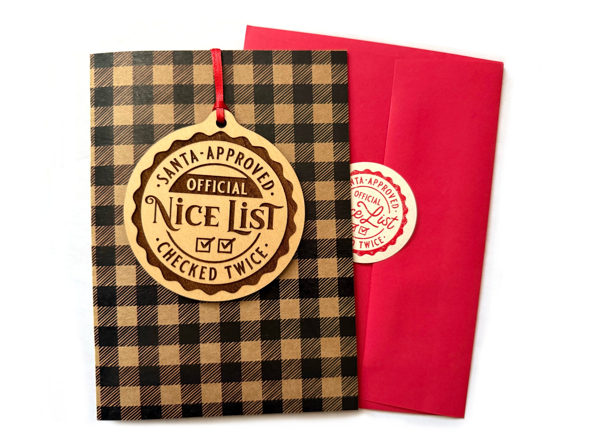 Set of 5, "Nice List" Ornament, 5x7 Greeting Card